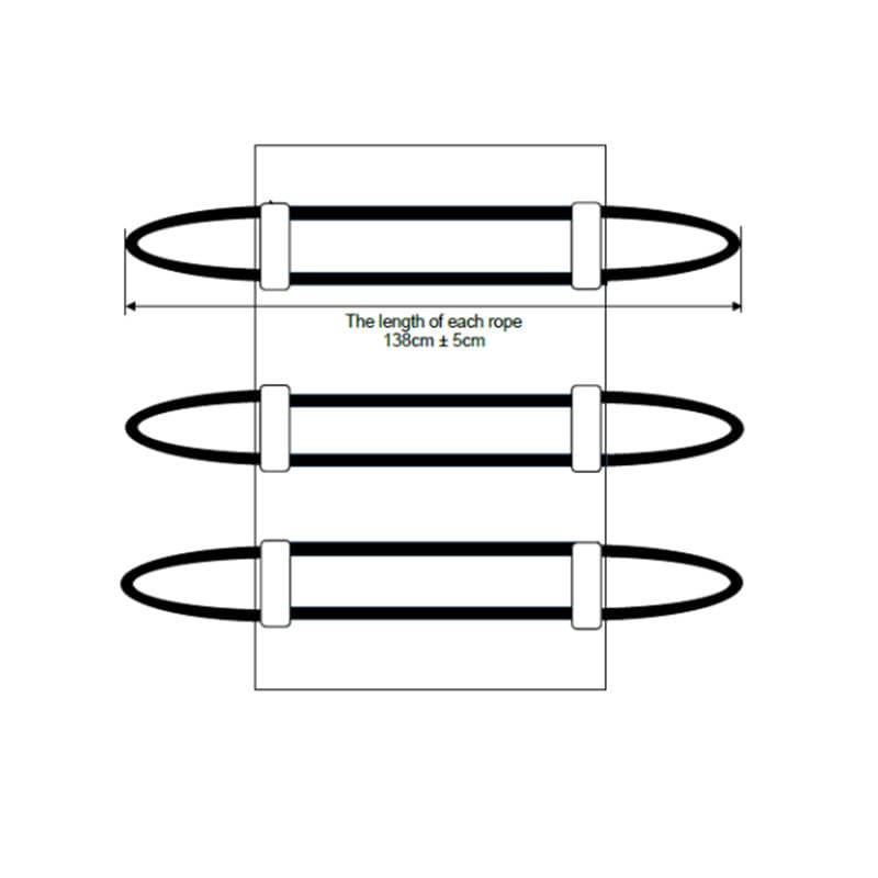 1.6 Equipped with six (3) pairs of canvas type strap handles sewn on the left and right of the body bag. The length of each strap measures 138cm ± 5cm after sewing. The minimum strap thickness is 0.50mm. ± 0.05mm. Minimum strap width 5cm ± 1cm (refer to appendix A)